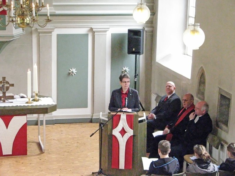 In ihrer Begrüßungsansprache zum Jubiläumsgottesdienst skizzierte die Vorsitzende des Kirchenvorstandes, Astrid Gödecke, die wechselvolle Geschichte der Peter und Paul Kirche in Börßum. Unabhängig von den verschiedenen Epochen und dem sichtbaren Wandel zu einem modernen hellen Kirchenraum sei die Gemeinde als tragendes Element der Garant für das bisherige Wirken und den Fortbestand. Nicht umsonst trug ja auch das Jubiläum das allseits beachtete Motto „Wir sind Kirche.“