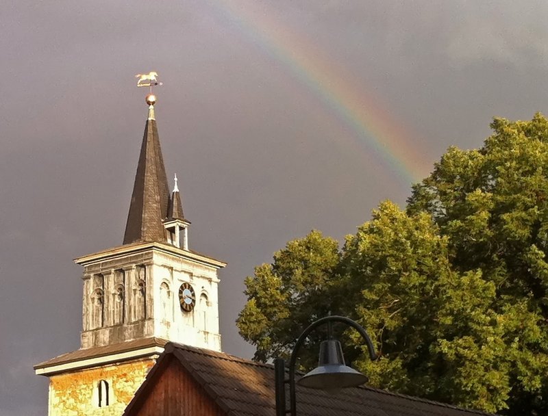 Regenbogen über unserer Kirche als ein nicht alltägliches und beeindruckendes Naturschauspiel.