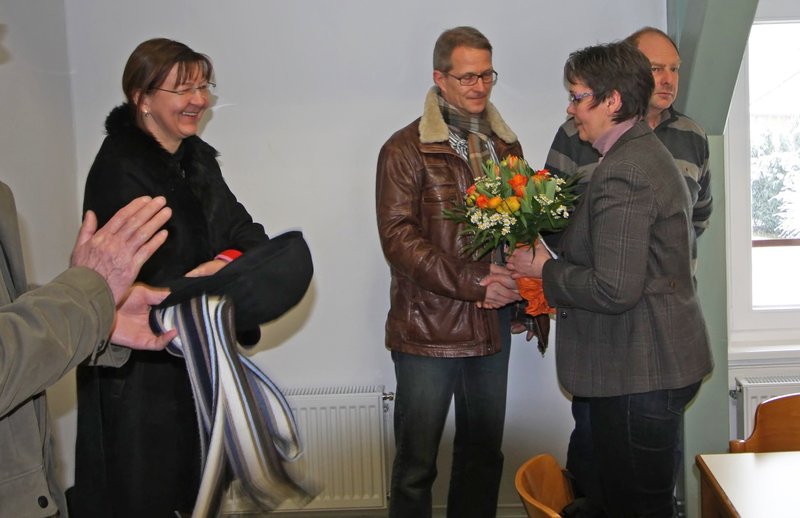 Die Vorsitzende des Kirchenvorstandes, Astrid Gödecke, dankte allen freiwilligen Helferinnen und Helfern, die in den vergangenen Wochen ehrenamtlich gewirkt haben. Nachdem in den letzten zwei Jahren das freiwillige Kirchgeld für die Renovierung gesammelt wurde und Dank der Großzügigkeit der Gemeindemitglieder der finanzielle Grundstock für die Renovierung gelegt wurde, waren es zudem das große Engagement und die Kontakte von Hartmut Fricke, die letztlich zur schnellen und erfolgreichen Umsetzung des Projektes führten. Hartmut Fricke zeichnete auch für die Planung und Realisierung der neuen Einbauschränke verantwortlich. Ihm und seiner Gattin Petra Fricke dankte Astrid Gödecke mit einem Blumenstrauß.