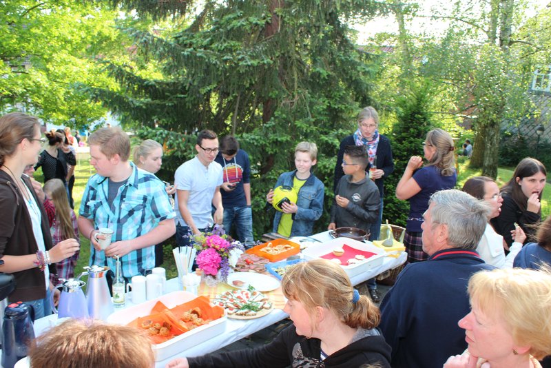 Auch die anwesenen Teamer, die Pfarrer Rolf Fröhlich unterstützen, stellten sich den anwesenden Eltern und der Gemeinde vor. Nach dem thematisch auf Himmelfahrt und Pfingsten abgestimmten Gottesdienst wurde vor der Kirche noch ein Imbiss gereicht und es bestand Gelegenheit zu interessanten Gesprächen.