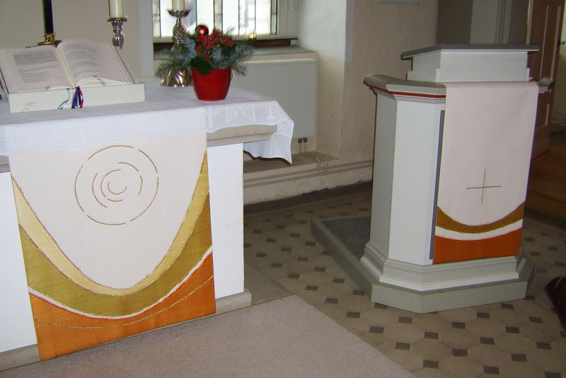 Am 2. Adventsonntag war es endlich soweit. Die evangelisch-lutherische Kirchengemeinde erhielt neue weiße Paramente für den Altar und die Kanzel.
