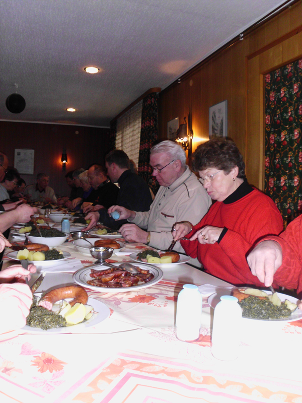 Nach Gebet und Reisesegen ging es hinaus in die klirrende Kälte. Unter der guten Anleitung von Henning Angerstein ging es durch die Achimer Feldmarkt in Richtung Börssum. Henning Angerstein verstand es mit seinen kurzen heimatkundlichen Erklärungen die Wanderung interessant zu gestalten. Gegen die Kälte hatte Familie Steiniger vorgesorgt und heißen Punsch für alle Teilnehmer mitgebracht. Die Wanderung ging bis zum Wasserwerk in Börßum und von dort über einen kleinen Pfad zu den Oderwalstuben in Börßum. Dort wartete auf die Teilnehmer leckerer Braunkohl mit deftigen Zutaten.