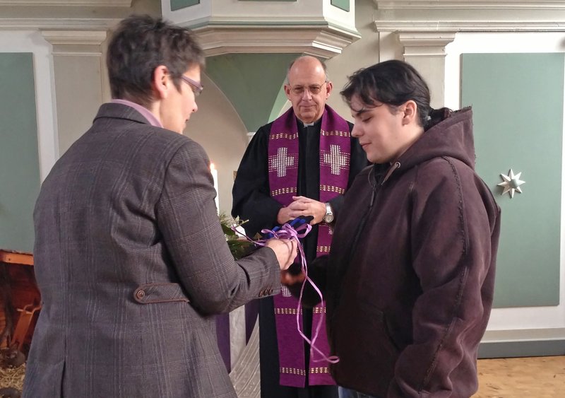 Frau Dorf wurde am 1. Advent von Pfarrer Rolf Fröhlich im Gottesdienst verpflichtet und von der Vorsitzenden des Kirchenvorstandes Astrid Gödecke mit einem Blumenstrauß sowie einem symbolischen Satz neuer Arbeitshandschuhe begrüßt.