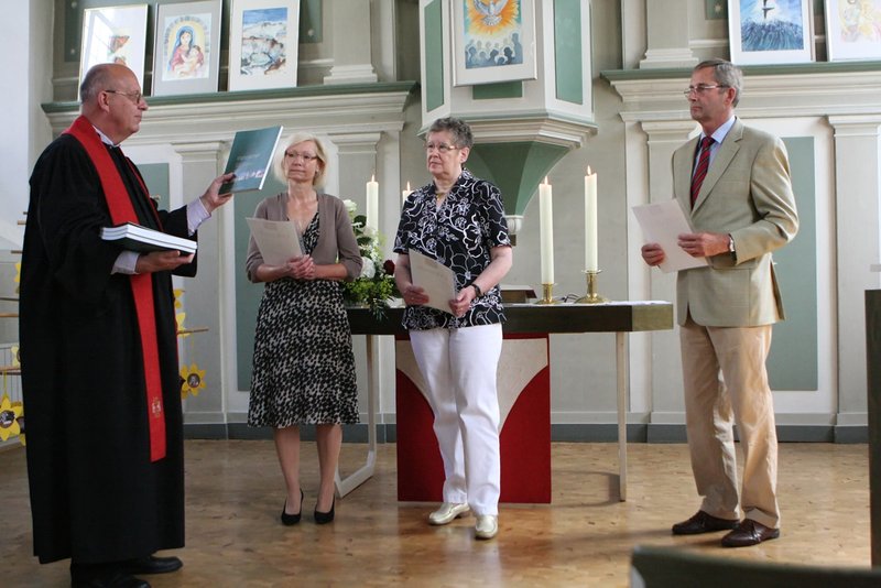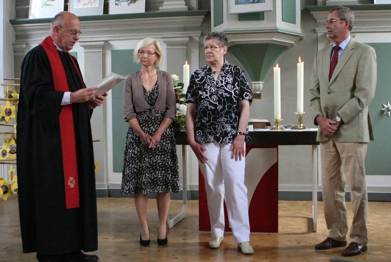 In einem feierlichen Gottesdienst wurden Kerstin Anhuth, Karin Eggeling (urlaubsbedingt abwesend Karsten Bötel) sowie Burkhard Meyer aus ihrem Amt verabschiedet.