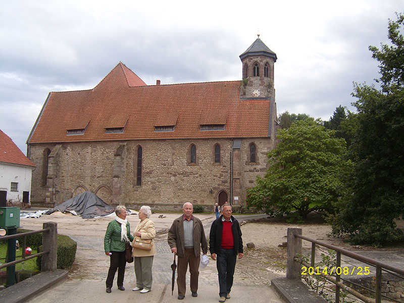 Im Programmablauf war nun freie Zeit zur Stadtbesichtigung vorgesehen, dieser Programmpunkt wurde aber kurzfristig geändert. Weges des Erntefestes hatten alle Geschäfte und auch Caffées in der Stadt ab 13.00 Uhr geschlossen. Auf Vorschlag des freundlichen Busfahrers fuhr die Gruppe in das 20 km entfernte Hannoversch-Münden. Hier hatten die Teilnehmer zwei Stunden Zeit zur Stadtbesichtigung, Kaffeetrinken oder auch zum Einkaufen. Um 16.00 Uhr wurde die Heimreise angetreten. Es wurde ein Zwischenstopp auf dem Klostergut „Mariengarten“ in der Nähe von Göttingen eingelegt. In der dortigen ehemaligen Klosterkirche wurde das Tagesprogramm mit einer von Pfarrer Rolf Fröhlich geleiteten Andacht abgerundet.