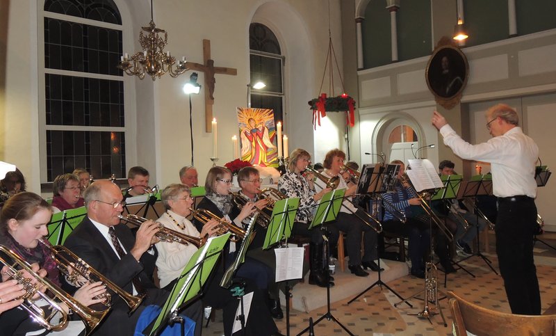 Bläserklang von mehr als zwei Dutzend Trompeten und Posaunen erfüllte am 1. Advent die bis auf den letzten Platz besetzte Kirche in Achim.