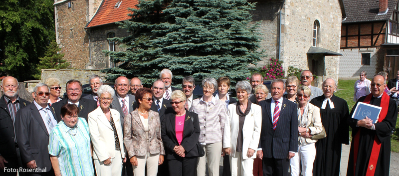 Für viele war es gar nicht einfach, ihre ehemaligen Mitkonfirmanden wiederzuerkennen. Viele hatten sich sehr lange nicht mehr gesehen, so dass die Wiedersehensfreude groß war. Sogar aus Konstanz war eine Jubilarin angereist. Als Ehrengast begrüßte Pfarrer Rolf Fröhlich Pfarrer i.R. Hans-Martin Buttler. Pfarrer Buttler hatte die Jubilare vor 50 Jahren konfirmiert. Gemeinsam zogen die Jubilare unter den Klängen des Posaunenchores in die Kirche ein, um gemeinsam einen Dankgottesdienst zu feiern. Seine Festpredigt stellte Pfarrer Fröhlich unter das Thema „Erinnerung und Dank“. Er unterstrich, dass sich in den vergangen 50 Jahren viel verändert habe. Eins aber sei geblieben – nämlich die Liebe Gottes zu seinen Geschöpfen. Er sagte, auch wenn die Jubilare vielleicht ihr Konfirmationsversprechen und sogar Gott manchmal vergessen hätten, so habe Gott dennoch die Konfirmanden nicht vergessen und habe sie mit seinem Segen umgeben. Zusammen mit Pfarrer Buttler überreichte Pfarrer Fröhlich den Jubilaren eine Urkunde und segnete sie erneut ein. Am Ende des Gottesdienstes feierten die Jubilare zusammen mit ihren Familienangehörigen und der Gemeinde das Abendmahl. Beim anschließenden Mittagessen, Spazierengehen und Kaffeetrinken wurden vielen Erinnerungen ausgetauscht. Anhand von Fotoalben erinnerten sich die Jubilare an die Zeit, die sie gemeinsam in Börßum als Konfirmanden erlebt hatten. Sie erzählten von manchen Streichen, die sie ihren damaligen jungen Pfarrer Buttler gespielt hatten. Sie waren sich einig, damals eine gute Zeit miteinander erlebt zu haben. Am Ende des Tages bedankten sich viele Teilnehmer bei den Organisatoren für das gelungene Fest.