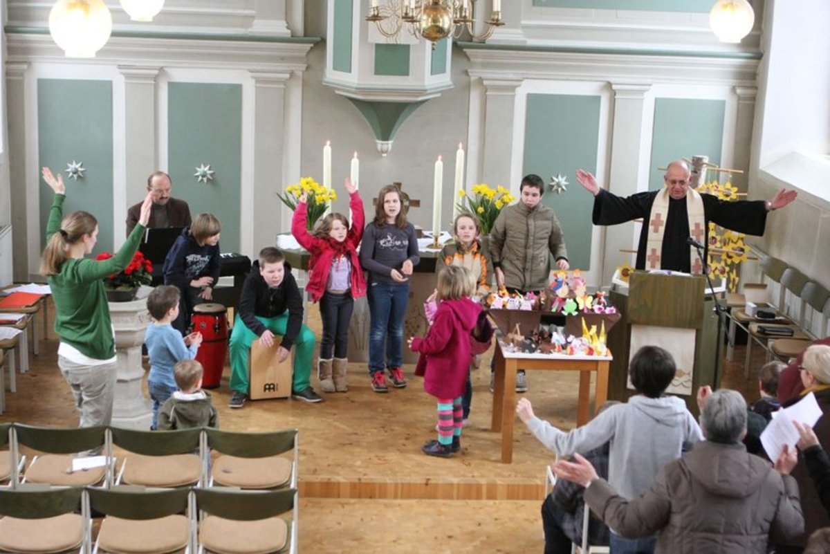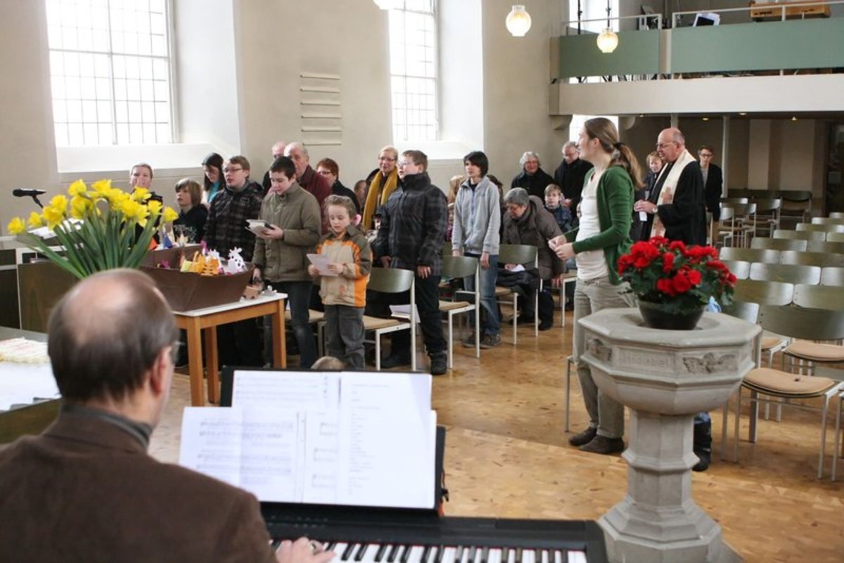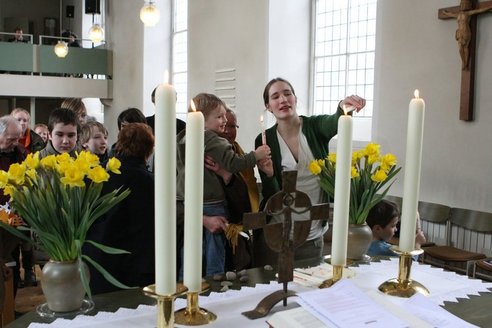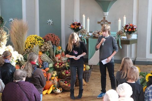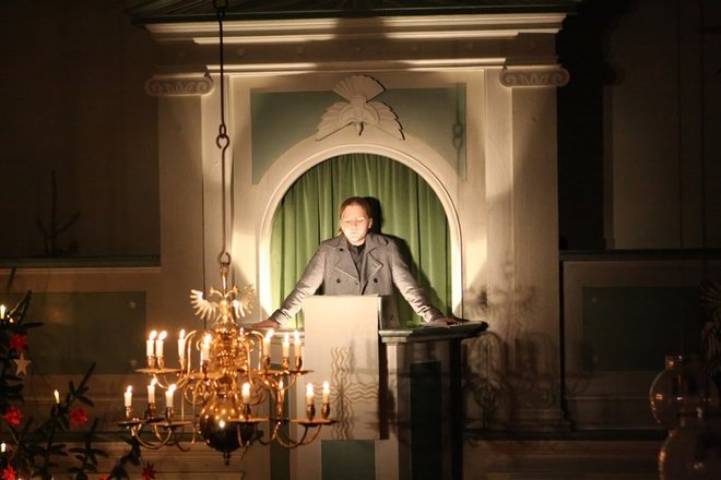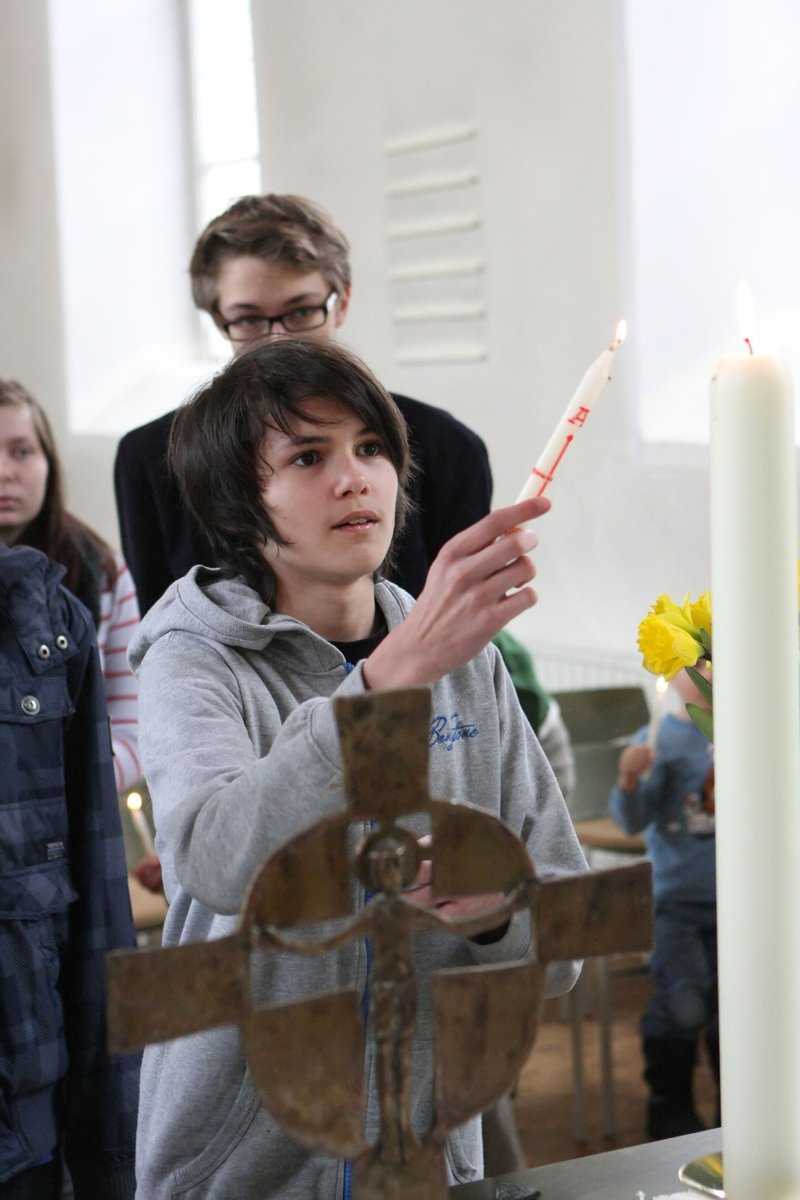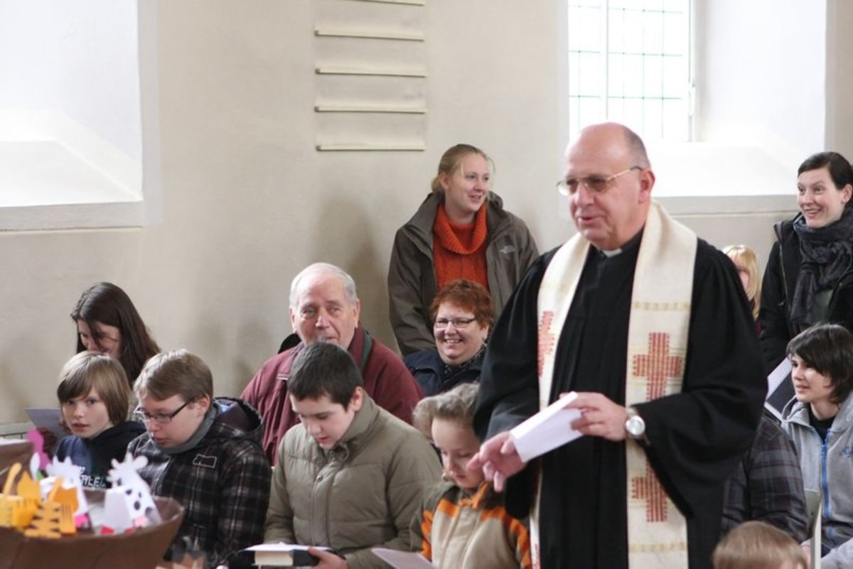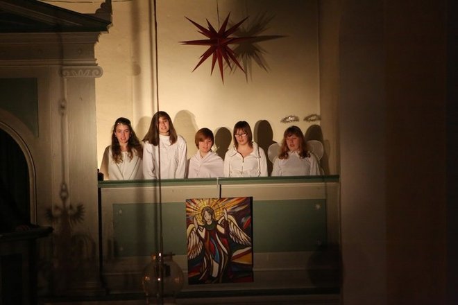 Im Zentrum des Gottesdienstes stand das Krippenspiel – traditionell dargeboten von den Vorkonfirmanden. Diese hatten gemeinsam mit den Teamern eine klassische Version einstudiert und boten diese nahezu perfekt dar. Alle hatten die Worte von Pfarrer Fröhlich beherzigt und sprachen laut und deutlich, so dass auch auf den Stehplätzen im Turm die Texte zu vernehmen waren.