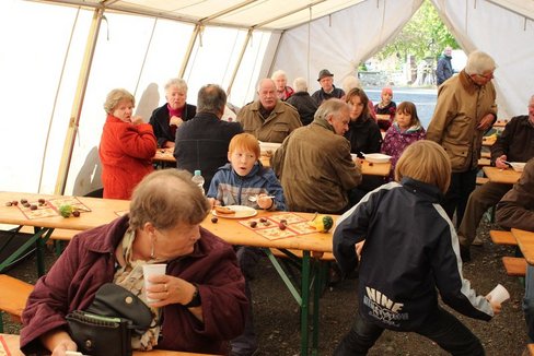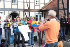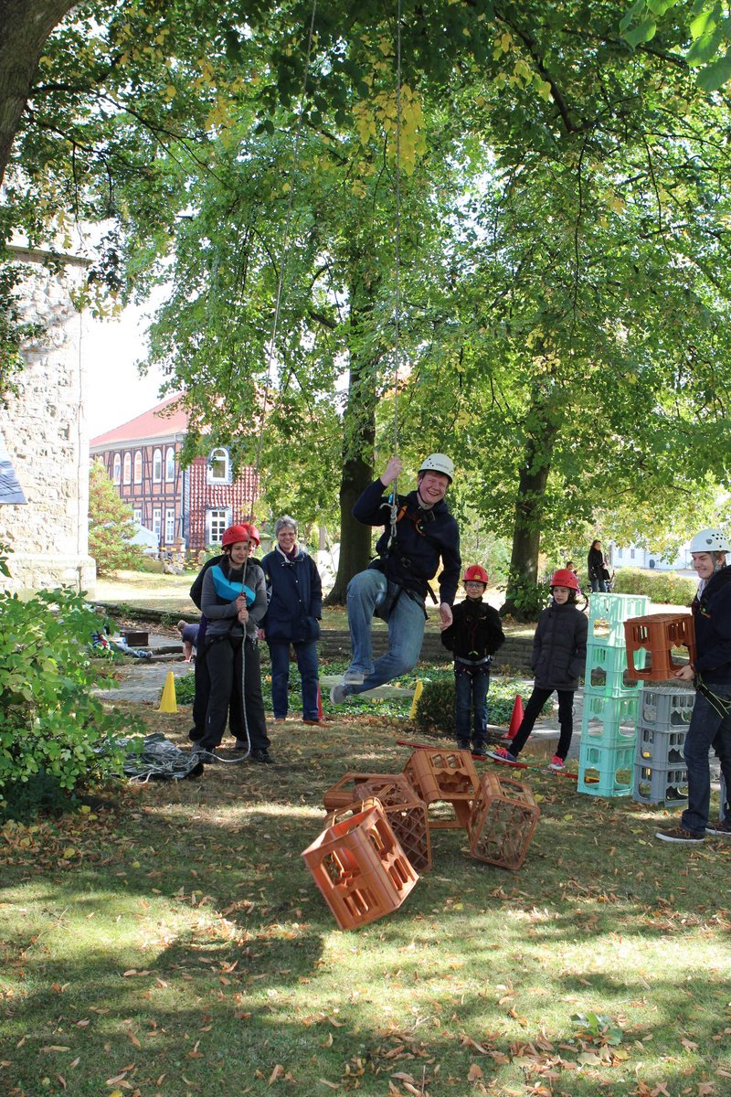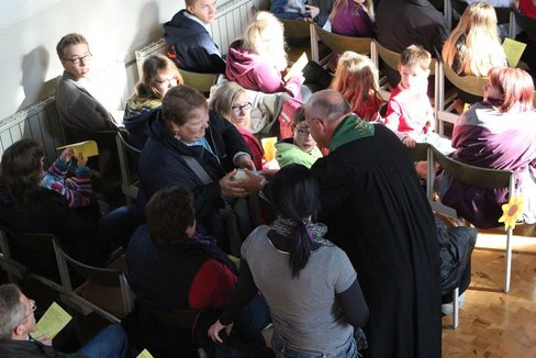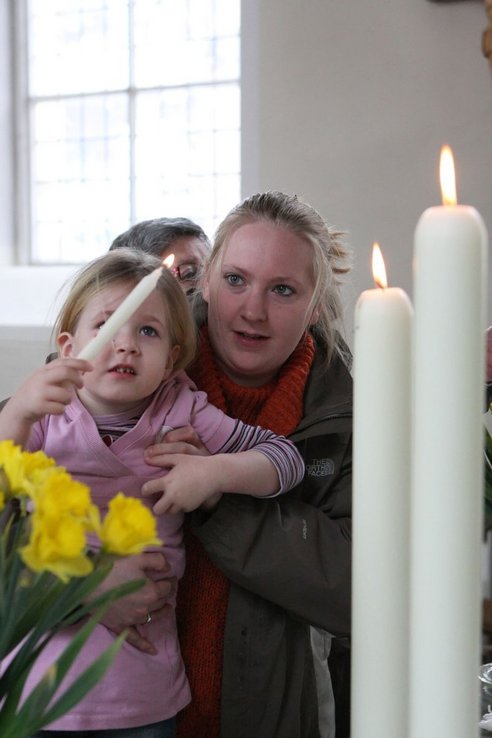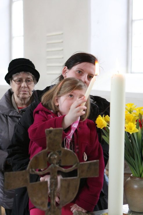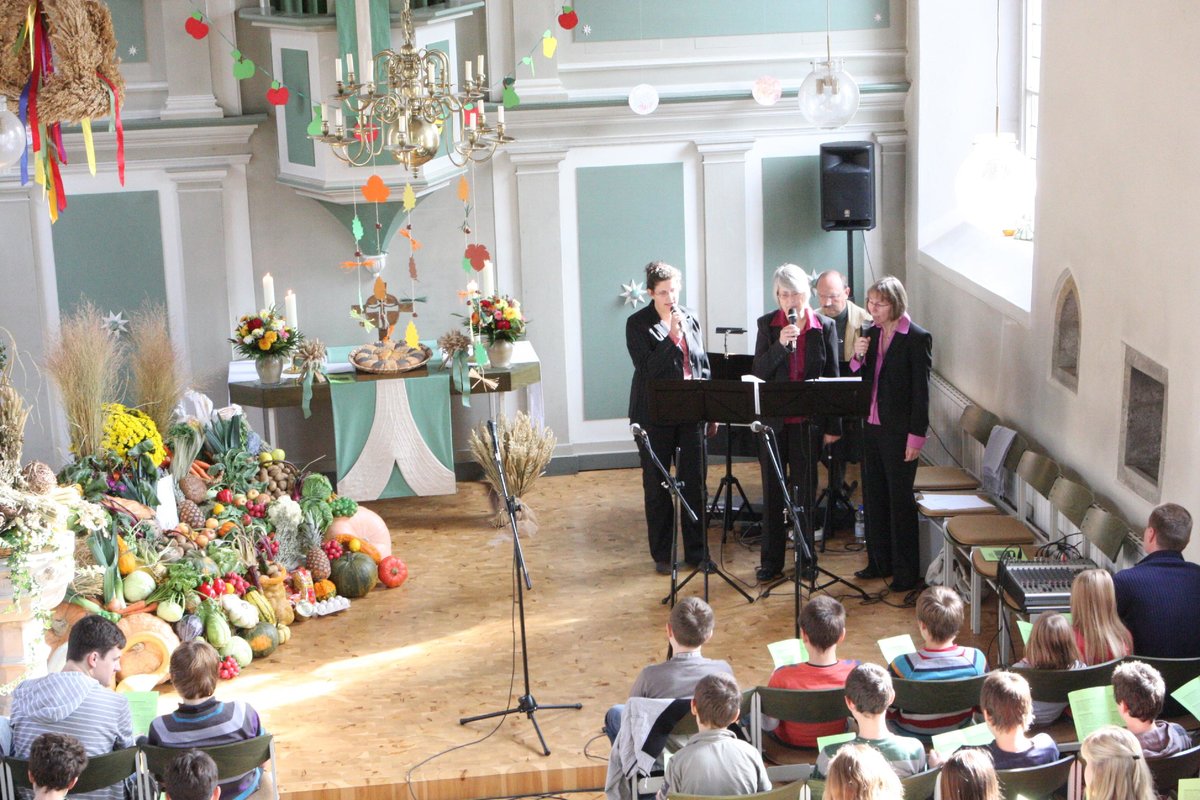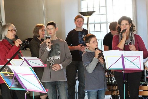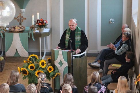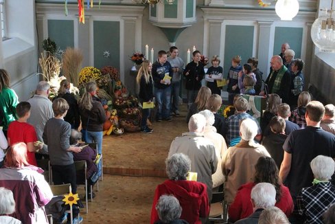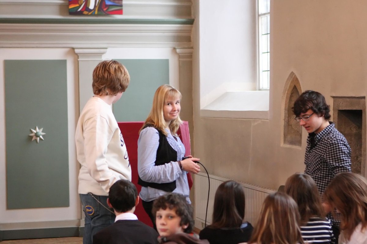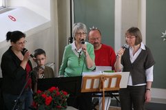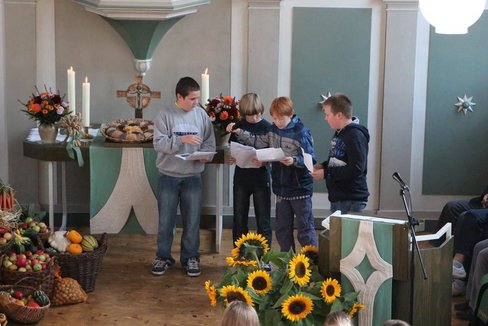 Im Zentrum des Gottesdienstes stand das Krippenspiel – traditionell dargeboten von den Vorkonfirmanden. Diese hatten gemeinsam mit den Teamern eine klassische Version einstudiert und boten diese nahezu perfekt dar. Alle hatten die Worte von Pfarrer Fröhlich beherzigt und sprachen laut und deutlich, so dass auch auf den Stehplätzen im Turm die Texte zu vernehmen waren.